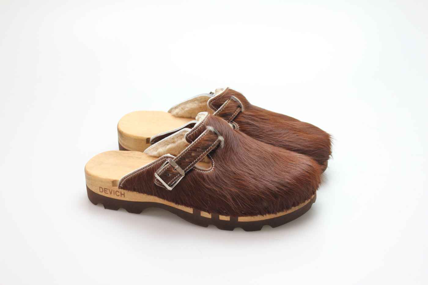 Bewegliche Clogs mit 3-fach flexibler Sohle und Schaffellfutter. Im Bild sehen Sie das Paar, das Sie erhalten.