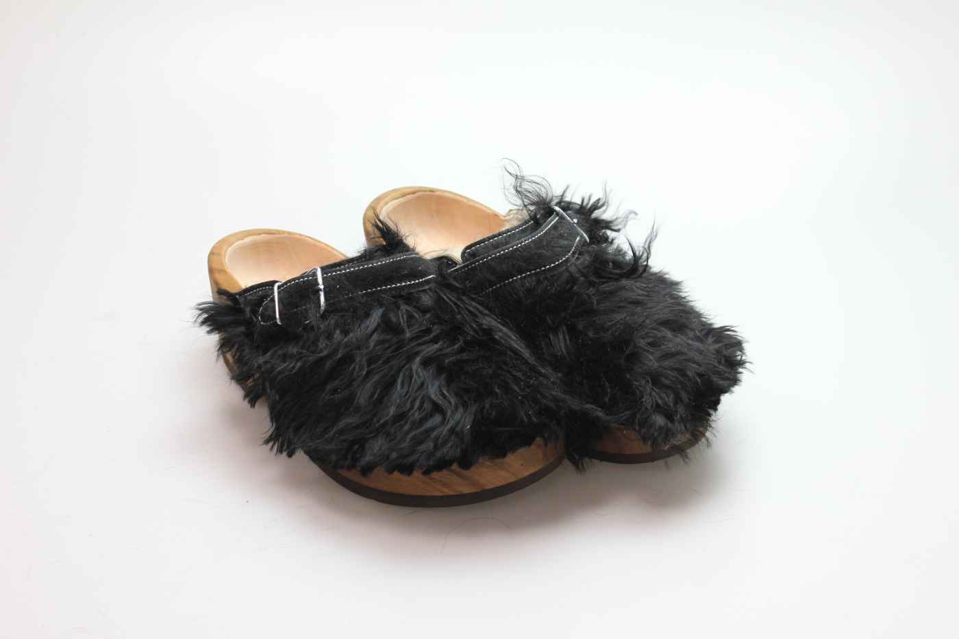 Der Holzschuh, mit dem Sie sicherlich auffallen werden. Außen verwenden wir für dieses Modell Ziegenfell. Für zusätzichen Komfort ist er auch mit Schaffell gefüttert. Im Bild sehen Sie das Unikat, welches Sie erhalten.