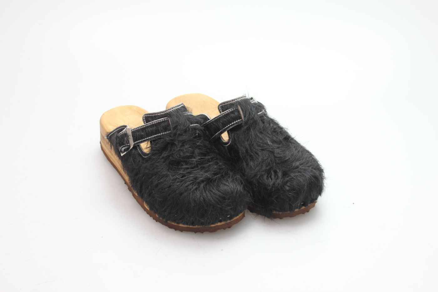 Das Obermaterial ist aus echtem Rindfell und in verschiedenen Farben erhältlich. Durch die Schnalle am Rist/Spann kann er dem Fuß angepasst werden. Im Bild sehen Sie das Exemplar, das Sie erhalten.