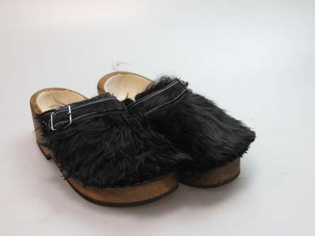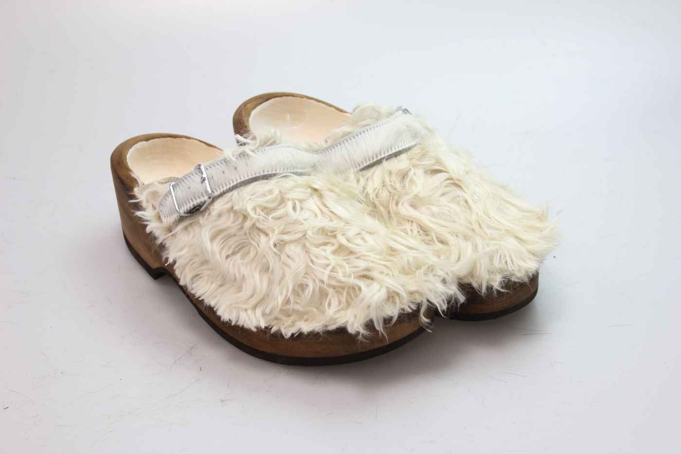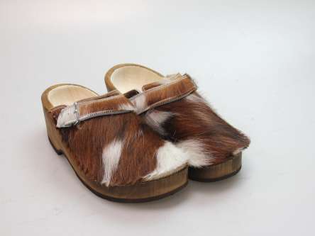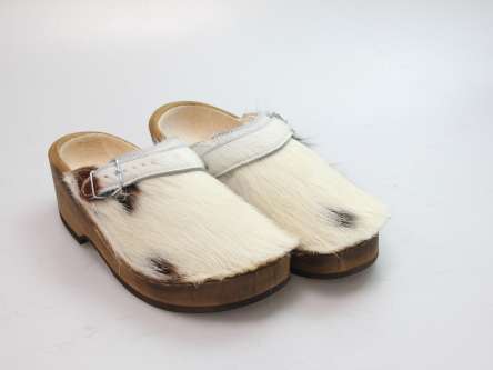 Der Holzschuh, mit dem Sie sicherlich auffallen werden. Außen verwenden wir für dieses Modell Ziegenfell. Für zusätzichen Komfort ist er auch mit Schaffell gefüttert. Im Bild sehen Sie das Unikat, welches Sie erhalten.