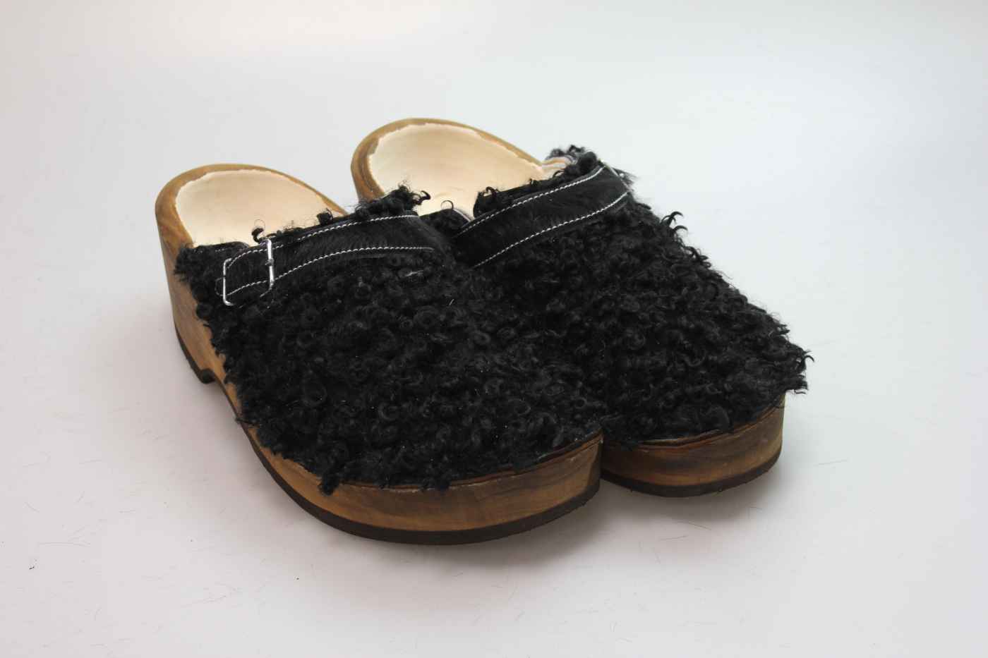 Der Holzschuh, mit dem Sie sicherlich auffallen werden. Außen verwenden wir für dieses Modell Ziegenfell. Für zusätzichen Komfort ist er auch mit Schaffell gefüttert. Im Bild sehen Sie das Unikat, welches Sie erhalten.