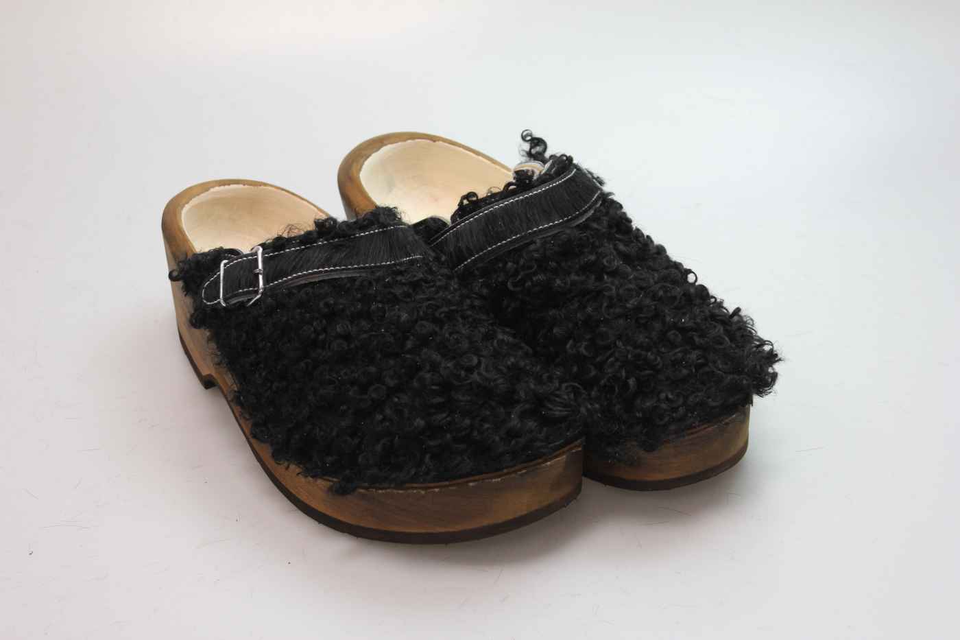Der Holzschuh, mit dem Sie sicherlich auffallen werden. Außen verwenden wir für dieses Modell Ziegenfell. Für zusätzichen Komfort ist er auch mit Schaffell gefüttert. Im Bild sehen Sie das Unikat, welches Sie erhalten.