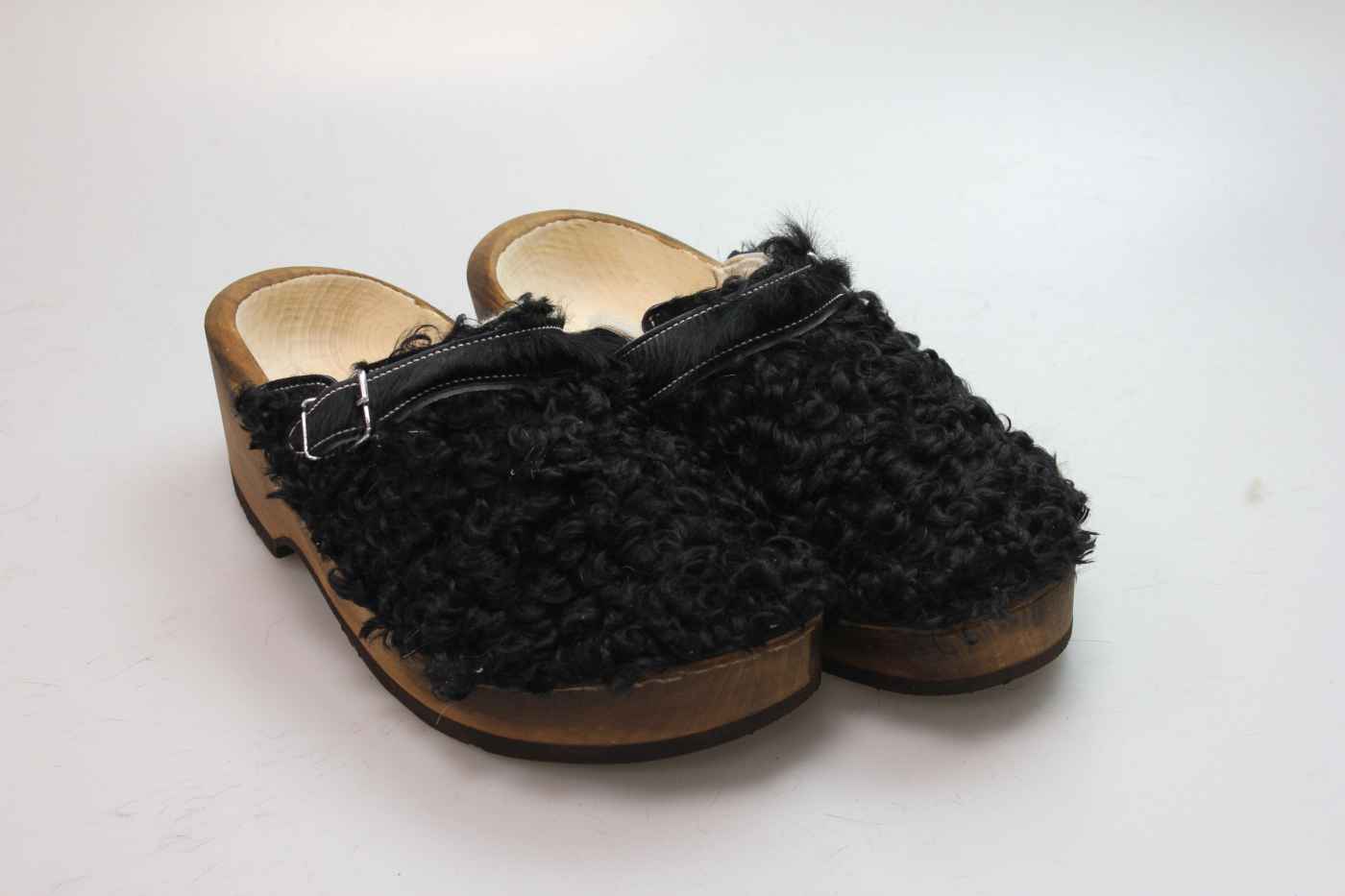Der Holzschuh, mit dem Sie sicherlich auffallen werden. Außen verwenden wir für dieses Modell Ziegenfell. Für zusätzichen Komfort ist er auch mit Schaffell gefüttert. Im Bild sehen Sie das Unikat, welches Sie erhalten.