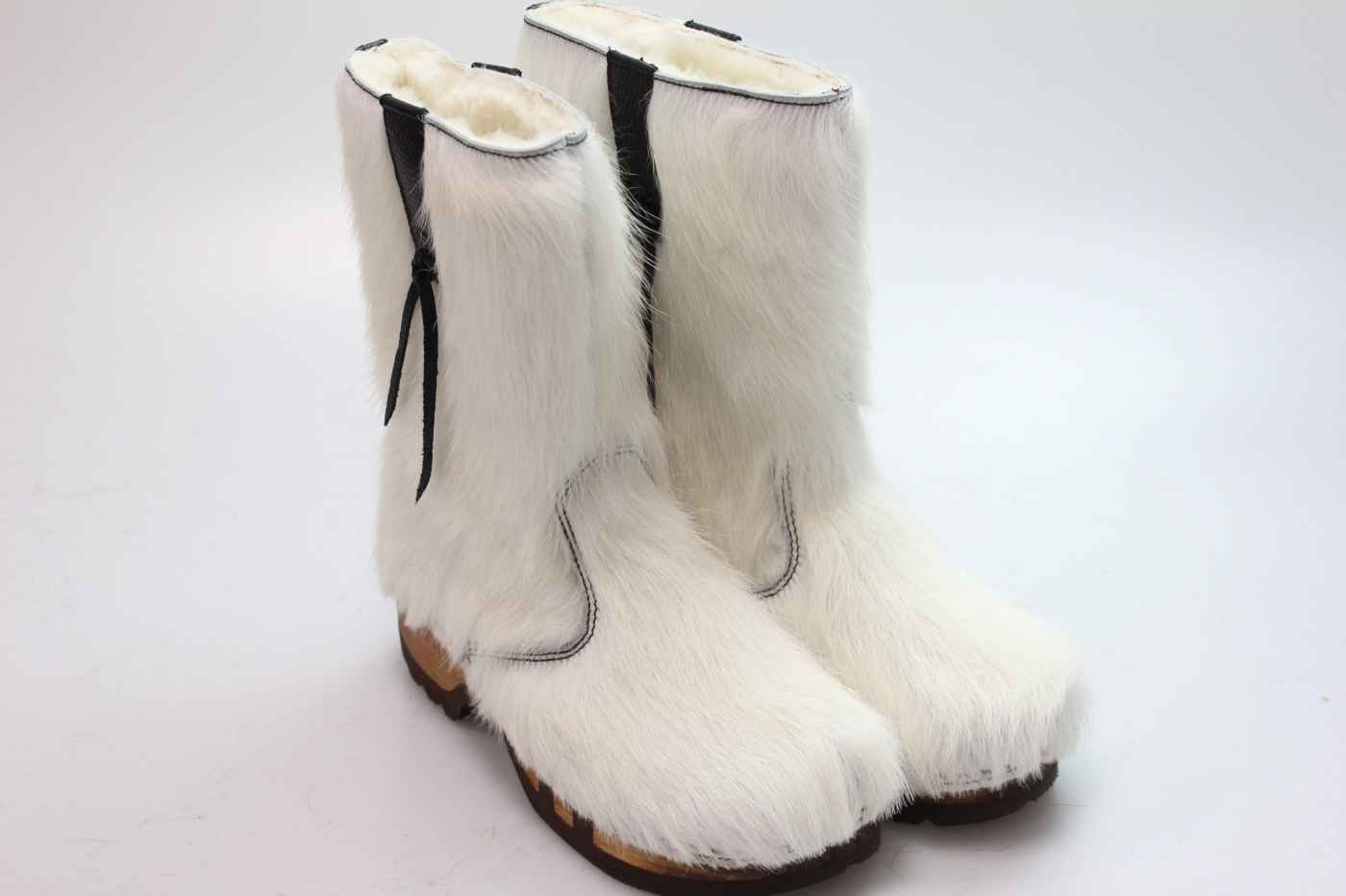 Bequemer Schlüpfstiefel aus Rindfell, mit beweglicher Holzsohle. Die Innenseite ist mit hochwertigem, echtem Schaffell verarbeitet.