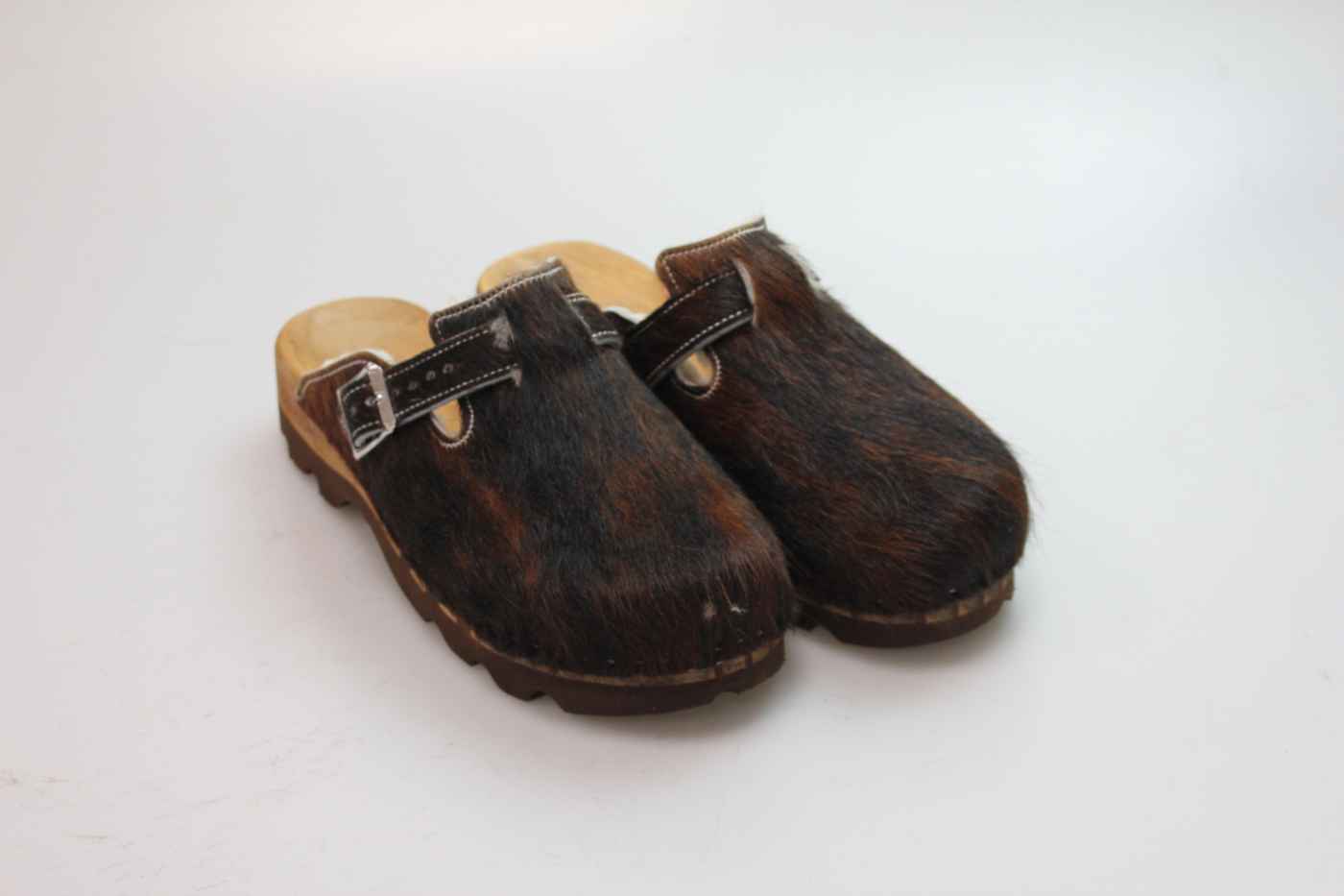 Bewegliche Clogs mit 3-fach flexibler Sohle und Schaffellfutter. Im Bild sehen Sie das Paar, das Sie erhalten.