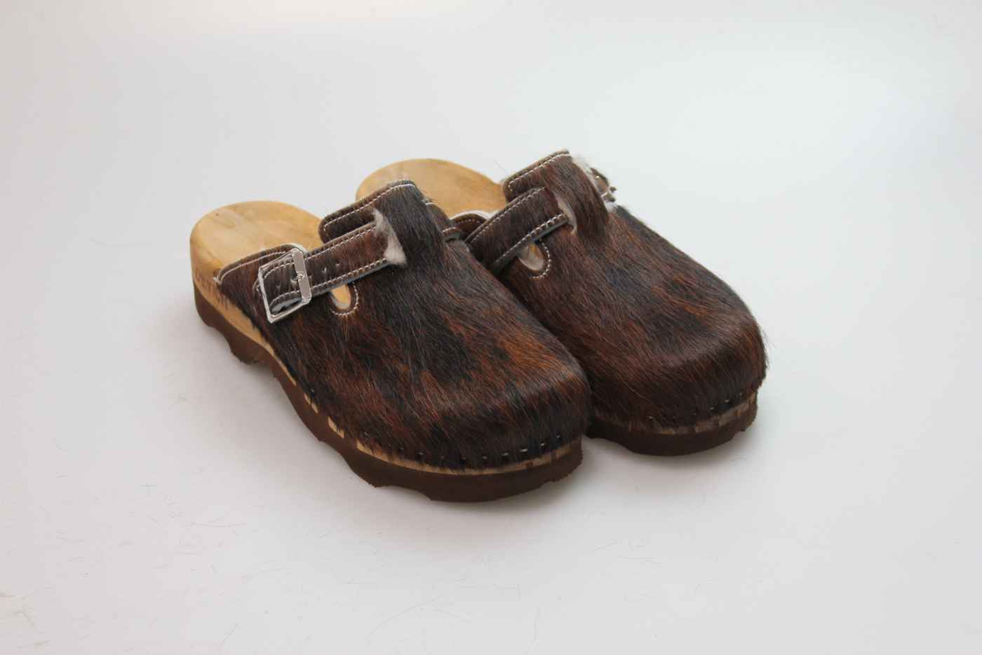 Bewegliche Clogs mit 3-fach flexibler Sohle und Schaffellfutter. Im Bild sehen Sie das Paar, das Sie erhalten.