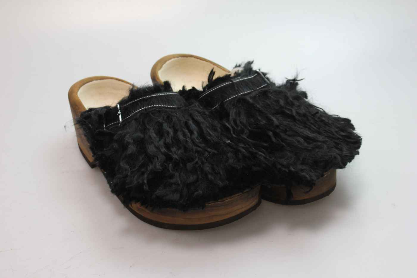 Der Holzschuh, mit dem Sie sicherlich auffallen werden. Außen verwenden wir für dieses Modell Ziegenfell. Für zusätzichen Komfort ist er auch mit Schaffell gefüttert. Im Bild sehen Sie das Unikat, welches Sie erhalten.