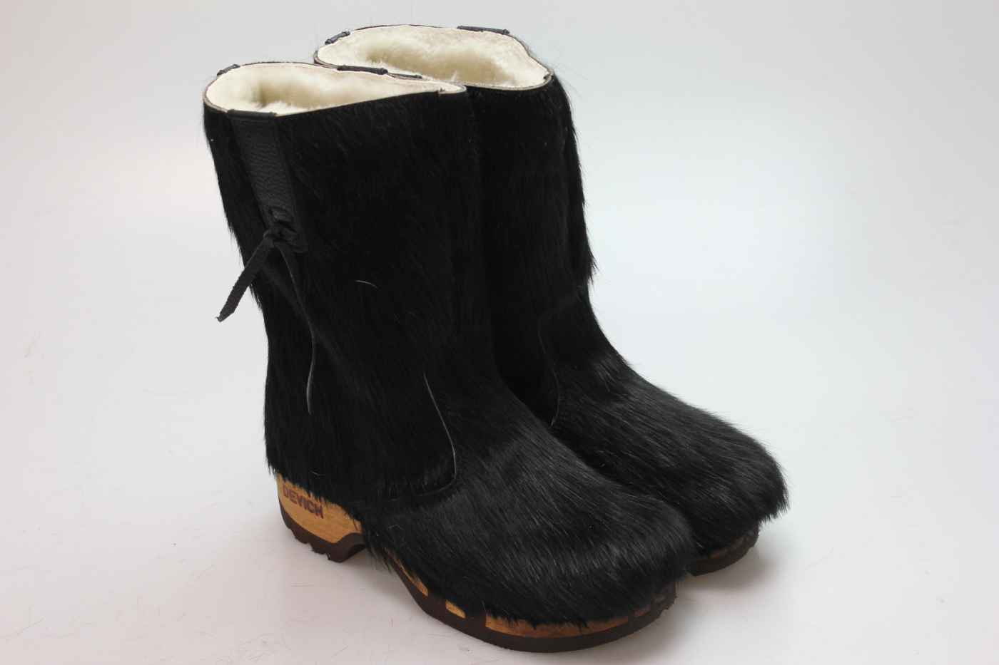 Bequemer Schlüpfstiefel aus Rindfell, mit beweglicher Holzsohle. Die Innenseite ist mit hochwertigem, echtem Schaffell verarbeitet.