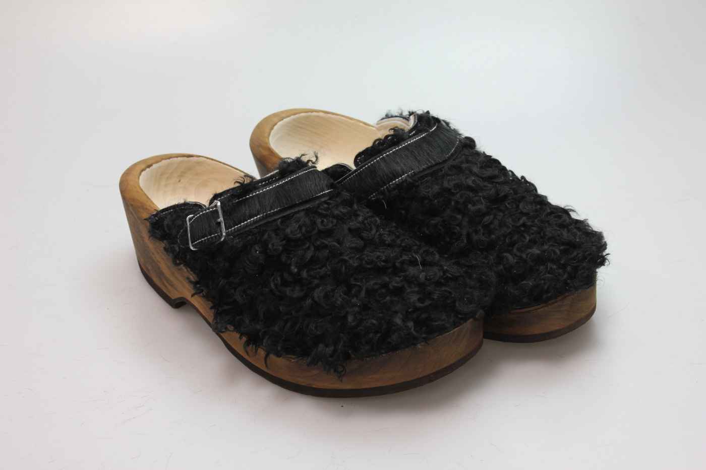 Der Holzschuh, mit dem Sie sicherlich auffallen werden. Außen verwenden wir für dieses Modell Ziegenfell. Für zusätzichen Komfort ist er auch mit Schaffell gefüttert. Im Bild sehen Sie das Unikat, welches Sie erhalten.