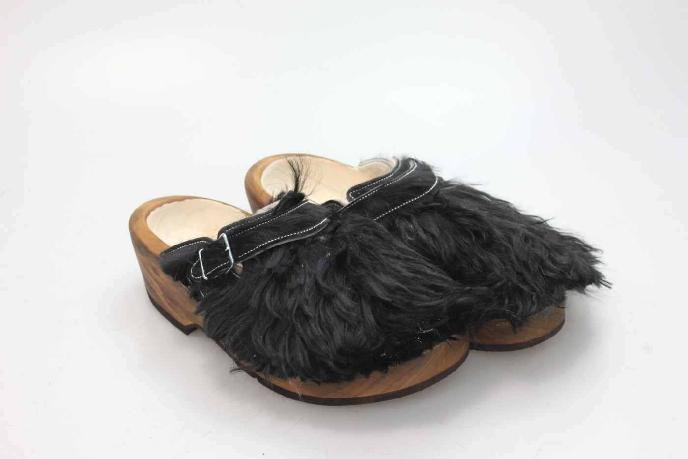 Der Holzschuh, mit dem Sie sicherlich auffallen werden. Außen verwenden wir für dieses Modell Ziegenfell. Für zusätzichen Komfort ist er auch mit Schaffell gefüttert. Im Bild sehen Sie das Unikat, welches Sie erhalten.