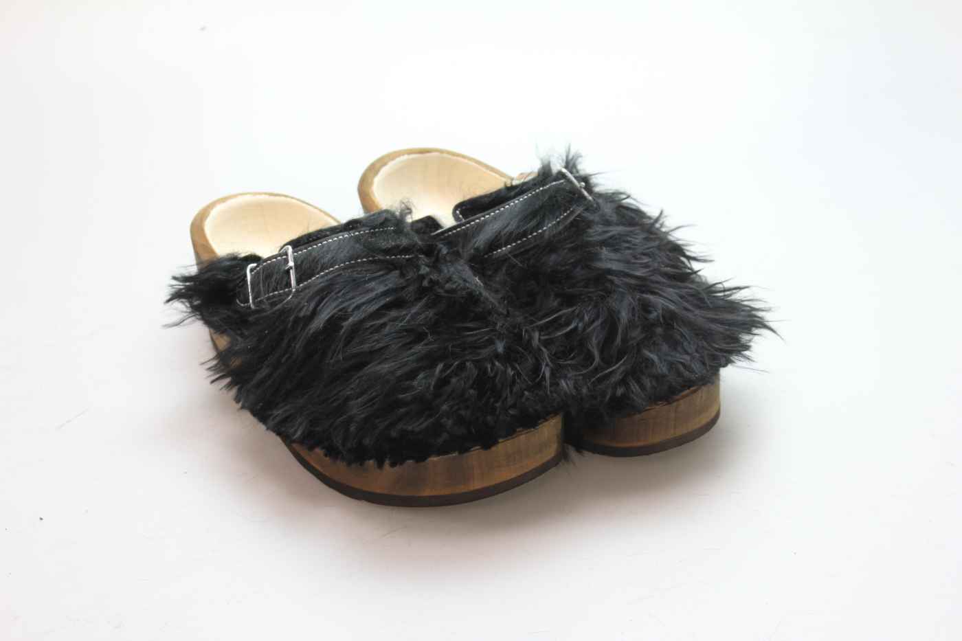 Der Holzschuh, mit dem Sie sicherlich auffallen werden. Außen verwenden wir für dieses Modell Ziegenfell. Für zusätzichen Komfort ist er auch mit Schaffell gefüttert. Im Bild sehen Sie das Unikat, welches Sie erhalten.