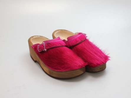 Der Holzschuh, mit dem Sie sicherlich auffallen werden. Außen verwenden wir für dieses Modell Ziegenfell. Für zusätzichen Komfort ist er auch mit Schaffell gefüttert. Im Bild sehen Sie das Unikat, welches Sie erhalten.