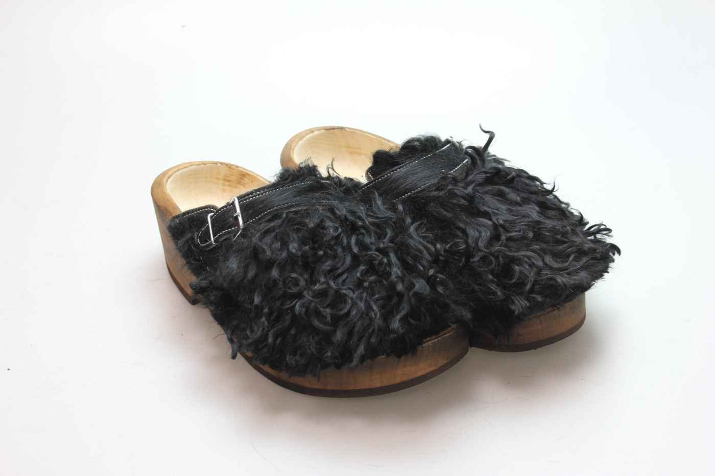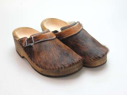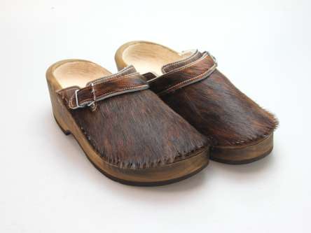 Der Holzschuh, mit dem Sie sicherlich auffallen werden. Außen verwenden wir für dieses Modell Ziegenfell. Für zusätzichen Komfort ist er auch mit Schaffell gefüttert. Im Bild sehen Sie das Unikat, welches Sie erhalten.