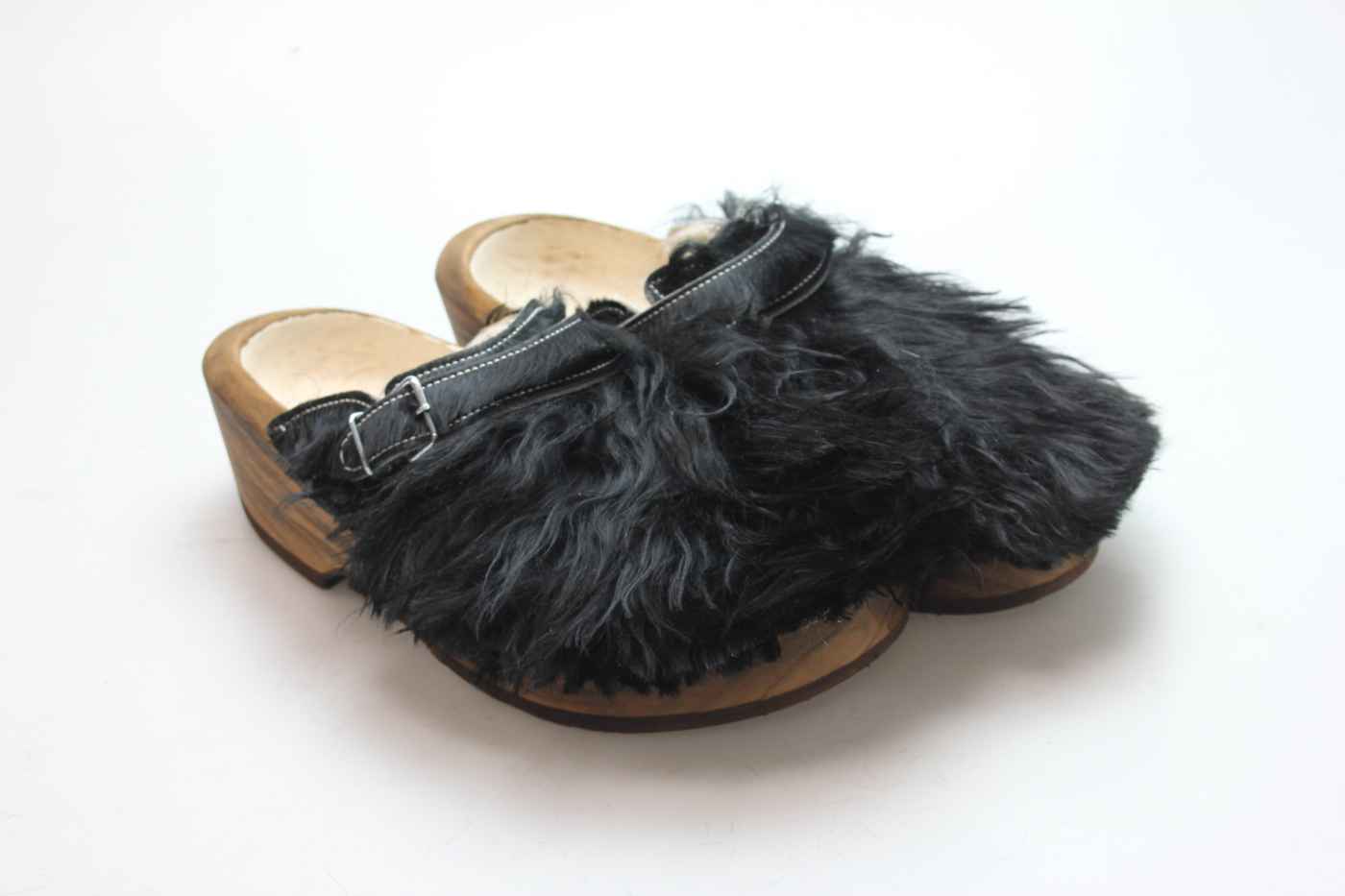 Der Holzschuh, mit dem Sie sicherlich auffallen werden. Außen verwenden wir für dieses Modell Ziegenfell. Für zusätzichen Komfort ist er auch mit Schaffell gefüttert. Im Bild sehen Sie das Unikat, welches Sie erhalten.