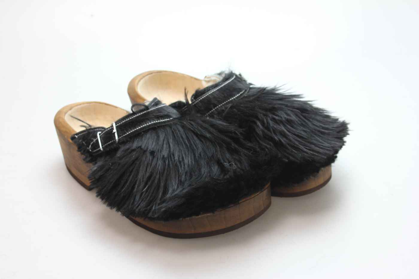 Der Holzschuh, mit dem Sie sicherlich auffallen werden. Außen verwenden wir für dieses Modell Ziegenfell. Für zusätzichen Komfort ist er auch mit Schaffell gefüttert. Im Bild sehen Sie das Unikat, welches Sie erhalten.