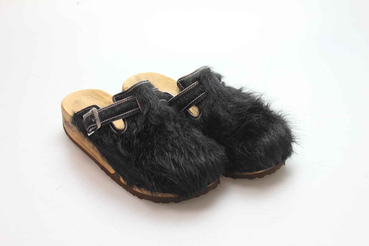 Das Obermaterial ist aus echtem Rindfell und in verschiedenen Farben erhältlich. Durch die Schnalle am Rist/Spann kann er dem Fuß angepasst werden. Im Bild sehen Sie das Exemplar, das Sie erhalten.