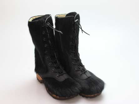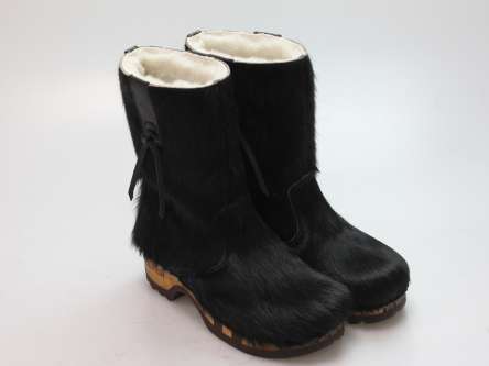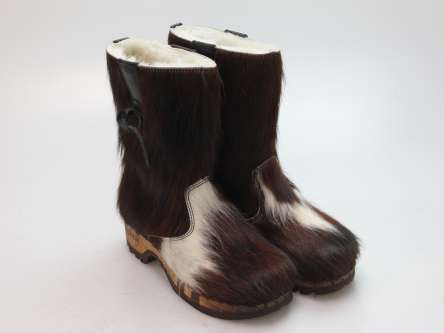Bequemer Stiefel aus Rindfell, mit beweglicher Holzsohle. Die Innenseite ist mit hochwertigem, echtem Kalbsleder verarbeitet. Schafthöhe 32 cm. Die Weite kann an der Schnürung eingestellt werden und auf der Innenseite ist er mit einem Reißverschluss ausgestattet. Im Bild sehen Sie genau das Paar, das Sie erhalten.