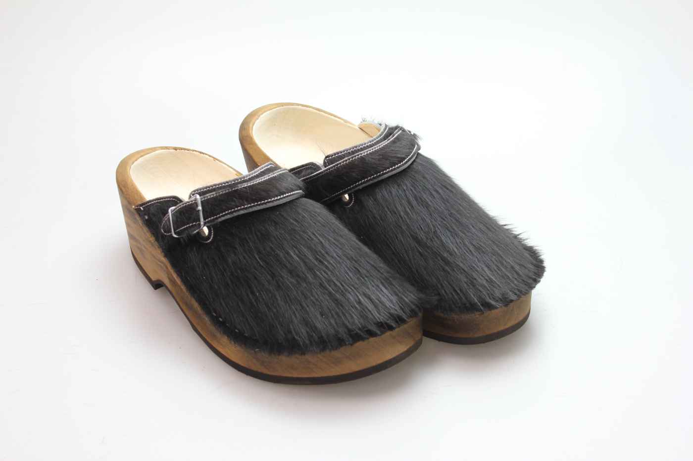 Dieser Holzschuh ist mittels einer Schnalle am Rist/Span verstellbar und ist mit einem Rindsleder gefüttert. Das Obermaterial ist echtes Rindfell. Im Bild sehen Sie das Unikat, welches Sie erhalten.