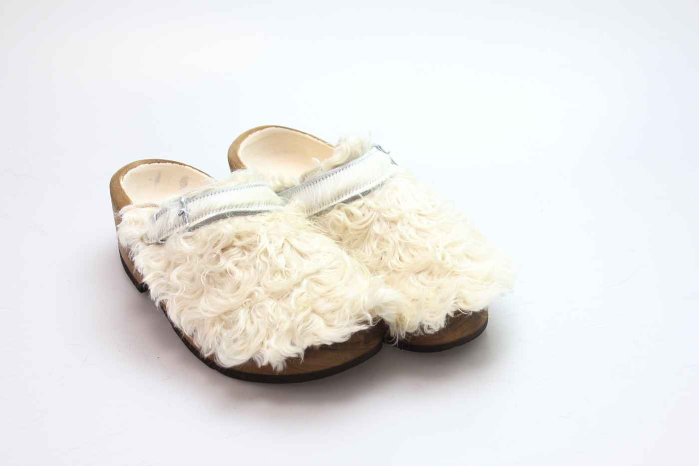 Der Holzschuh, mit dem Sie sicherlich auffallen werden. Außen verwenden wir für dieses Modell Ziegenfell. Für zusätzichen Komfort ist er auch mit Schaffell gefüttert. Im Bild sehen Sie das Unikat, welches Sie erhalten.