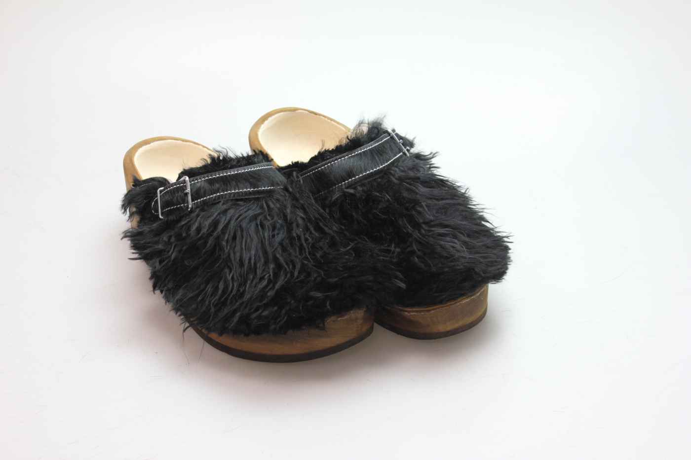 Der Holzschuh, mit dem Sie sicherlich auffallen werden. Außen verwenden wir für dieses Modell Ziegenfell. Für zusätzichen Komfort ist er auch mit Schaffell gefüttert. Im Bild sehen Sie das Unikat, welches Sie erhalten.
