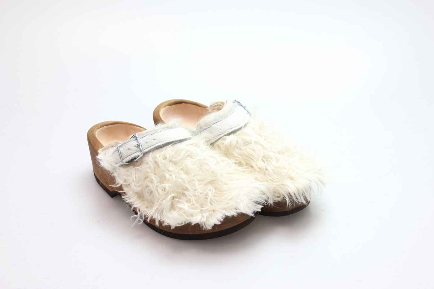 Der Holzschuh, mit dem Sie sicherlich auffallen werden. Außen verwenden wir für dieses Modell Ziegenfell. Für zusätzichen Komfort ist er auch mit Schaffell gefüttert. Im Bild sehen Sie das Unikat, welches Sie erhalten.