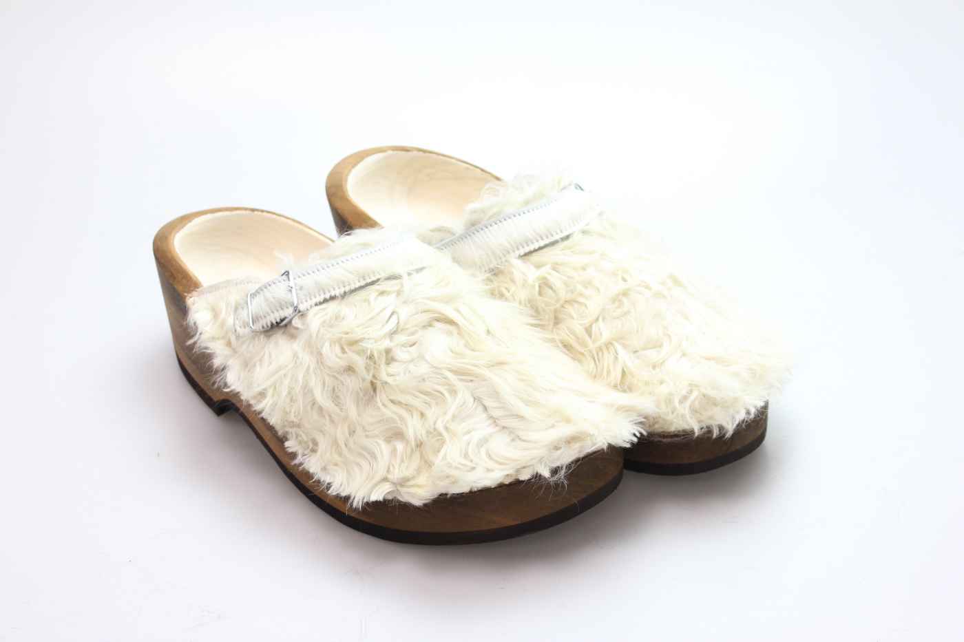 Der Holzschuh, mit dem Sie sicherlich auffallen werden. Außen verwenden wir für dieses Modell Ziegenfell. Für zusätzichen Komfort ist er auch mit Schaffell gefüttert. Im Bild sehen Sie das Unikat, welches Sie erhalten.