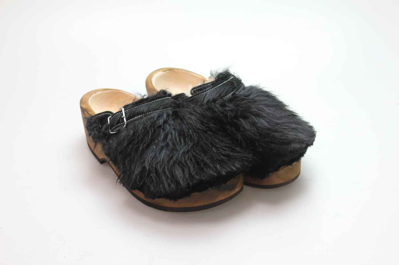 Der Holzschuh, mit dem Sie sicherlich auffallen werden. Außen verwenden wir für dieses Modell Ziegenfell. Für zusätzichen Komfort ist er auch mit Schaffell gefüttert. Im Bild sehen Sie das Unikat, welches Sie erhalten.