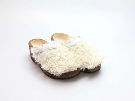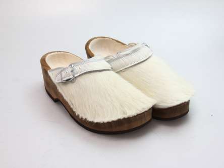 Der Holzschuh, mit dem Sie sicherlich auffallen werden. Außen verwenden wir für dieses Modell Ziegenfell. Für zusätzichen Komfort ist er auch mit Schaffell gefüttert. Im Bild sehen Sie das Unikat, welches Sie erhalten.