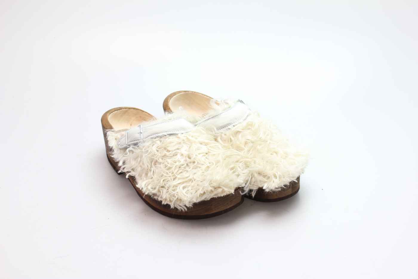 Der Holzschuh, mit dem Sie sicherlich auffallen werden. Außen verwenden wir für dieses Modell Ziegenfell. Für zusätzichen Komfort ist er auch mit Schaffell gefüttert. Im Bild sehen Sie das Unikat, welches Sie erhalten.