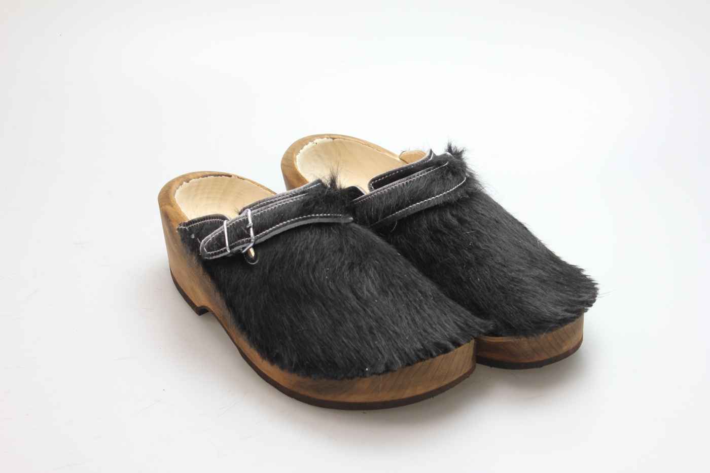 Dieser Holzschuh ist mittels einer Schnalle am Rist/Span verstellbar und ist mit einem Rindsleder gefüttert. Das Obermaterial ist echtes Rindfell. Im Bild sehen Sie das Unikat, welches Sie erhalten.