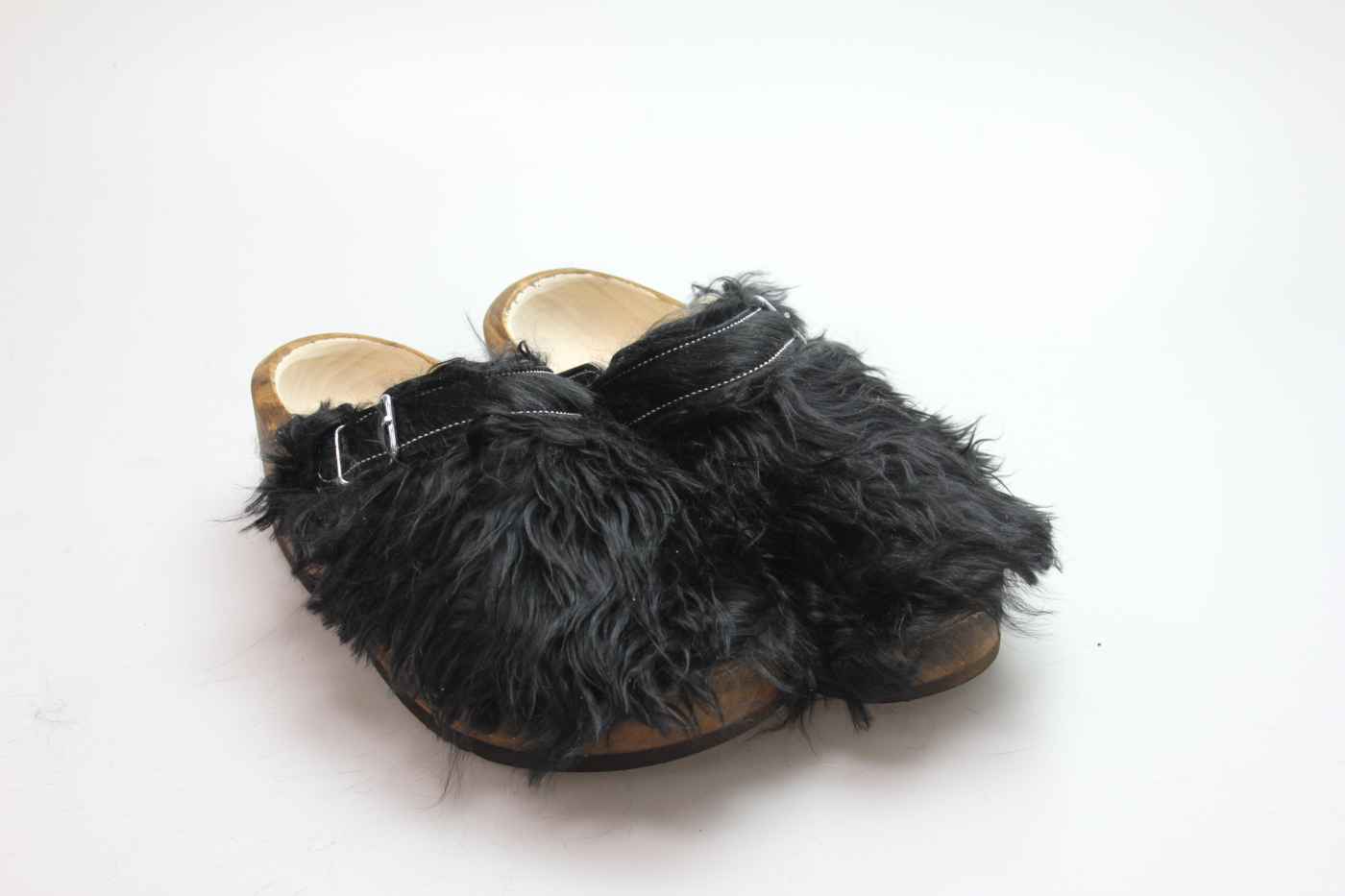 Der Holzschuh, mit dem Sie sicherlich auffallen werden. Außen verwenden wir für dieses Modell Ziegenfell. Für zusätzichen Komfort ist er auch mit Schaffell gefüttert. Im Bild sehen Sie das Unikat, welches Sie erhalten.
