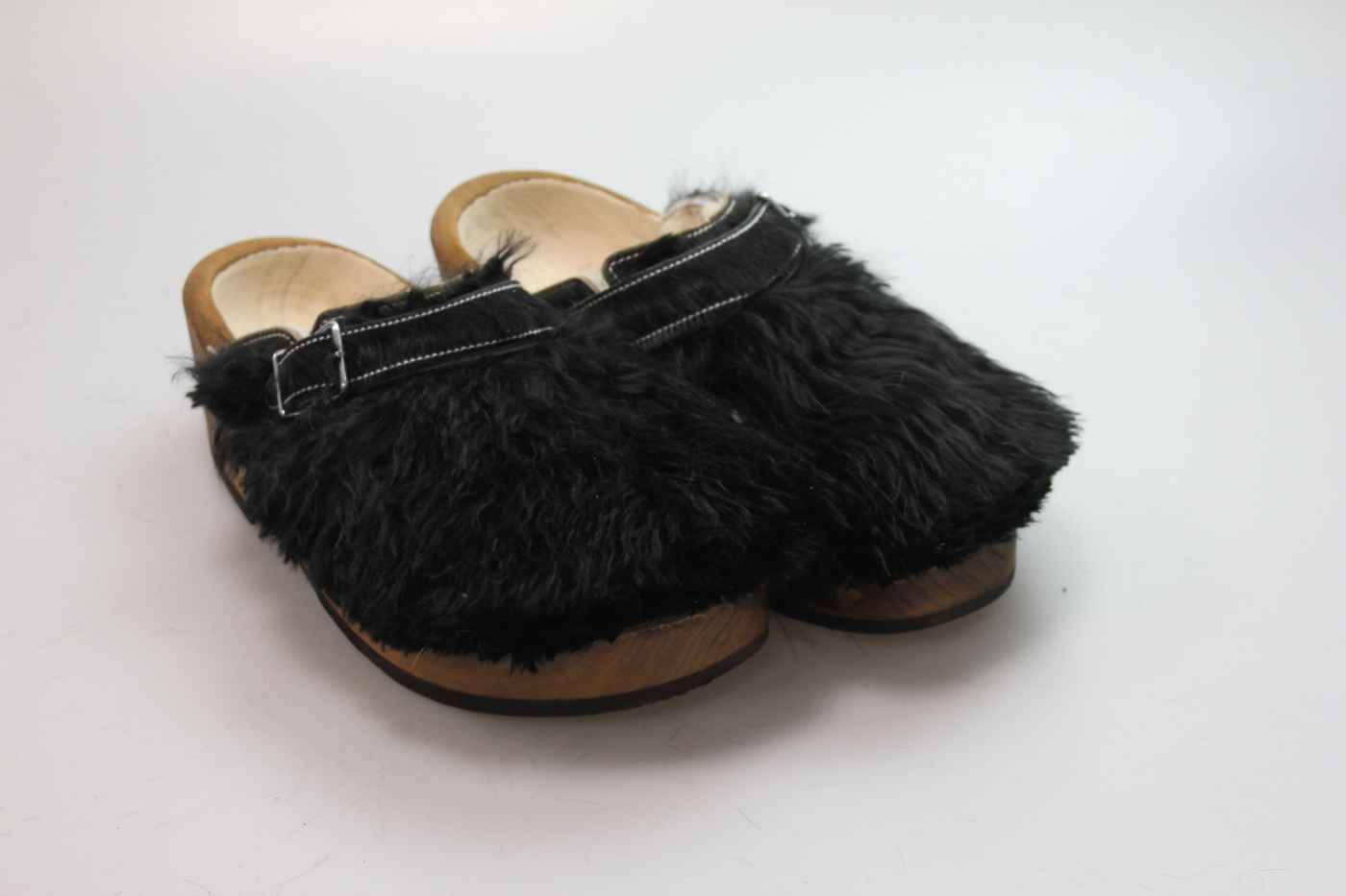 Der Holzschuh, mit dem Sie sicherlich auffallen werden. Außen verwenden wir für dieses Modell Ziegenfell. Für zusätzichen Komfort ist er auch mit Schaffell gefüttert. Im Bild sehen Sie das Unikat, welches Sie erhalten.