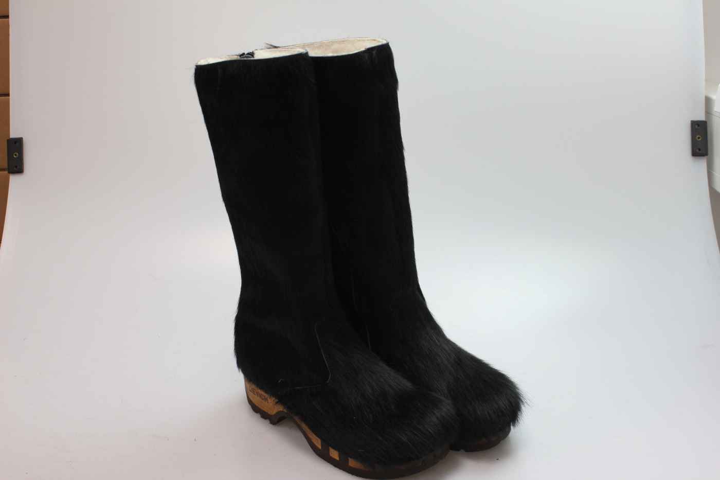 Bequemer Stiefel aus Rindfell, mit beweglicher Holzsohle. Die Innenseite ist echtem Schaffell verarbeitet. Schafthöhe 32 cm. Im Bild sehen Sie die Farbe Natur. Da es sich um gewachsenes Naturmaterial handelt, gleicht kein Paar dem anderen. Farbabweichungen vom Bild sind daher unumgänglich. Klicken Sie auf die Lupe um die anderen Perspektiven zu sehen.