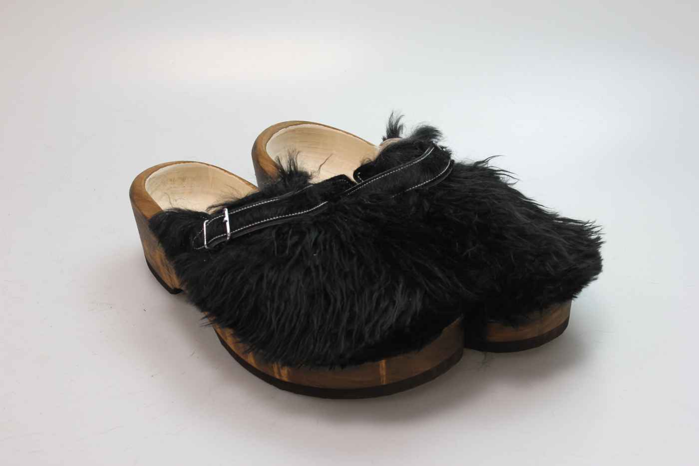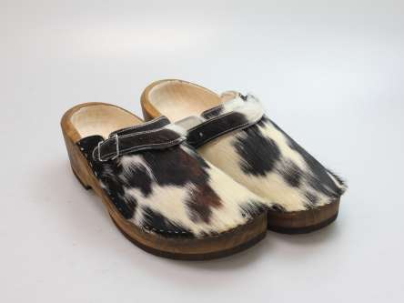Der Holzschuh, mit dem Sie sicherlich auffallen werden. Außen verwenden wir für dieses Modell Ziegenfell. Für zusätzichen Komfort ist er auch mit Schaffell gefüttert. Im Bild sehen Sie das Unikat, welches Sie erhalten.
