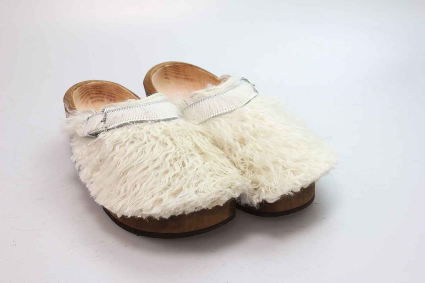 Der Holzschuh, mit dem Sie sicherlich auffallen werden. Außen verwenden wir für dieses Modell Ziegenfell. Für zusätzichen Komfort ist er auch mit Schaffell gefüttert. Im Bild sehen Sie das Unikat, welches Sie erhalten.