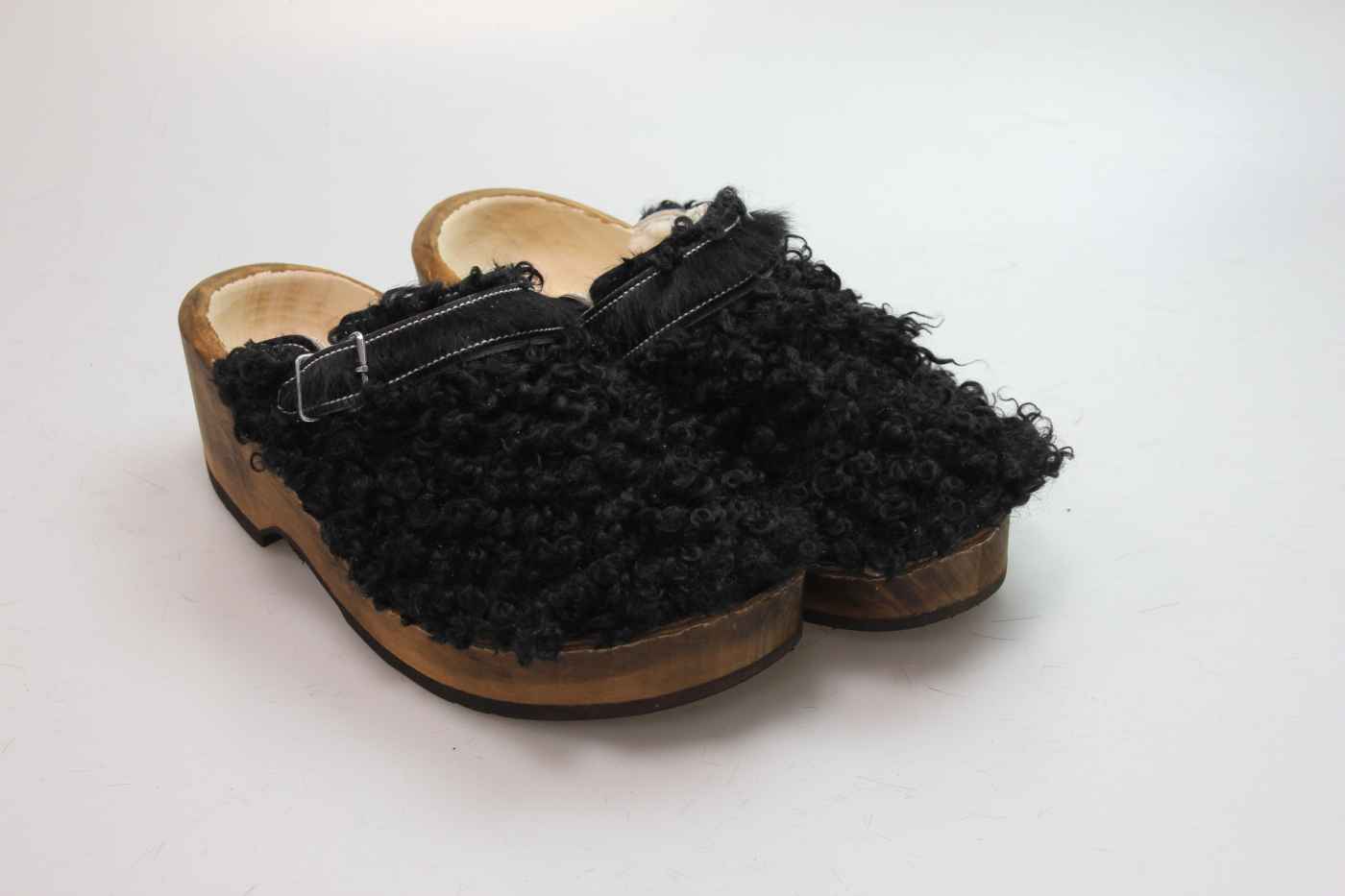 Der Holzschuh, mit dem Sie sicherlich auffallen werden. Außen verwenden wir für dieses Modell Ziegenfell. Für zusätzichen Komfort ist er auch mit Schaffell gefüttert. Im Bild sehen Sie das Unikat, welches Sie erhalten.