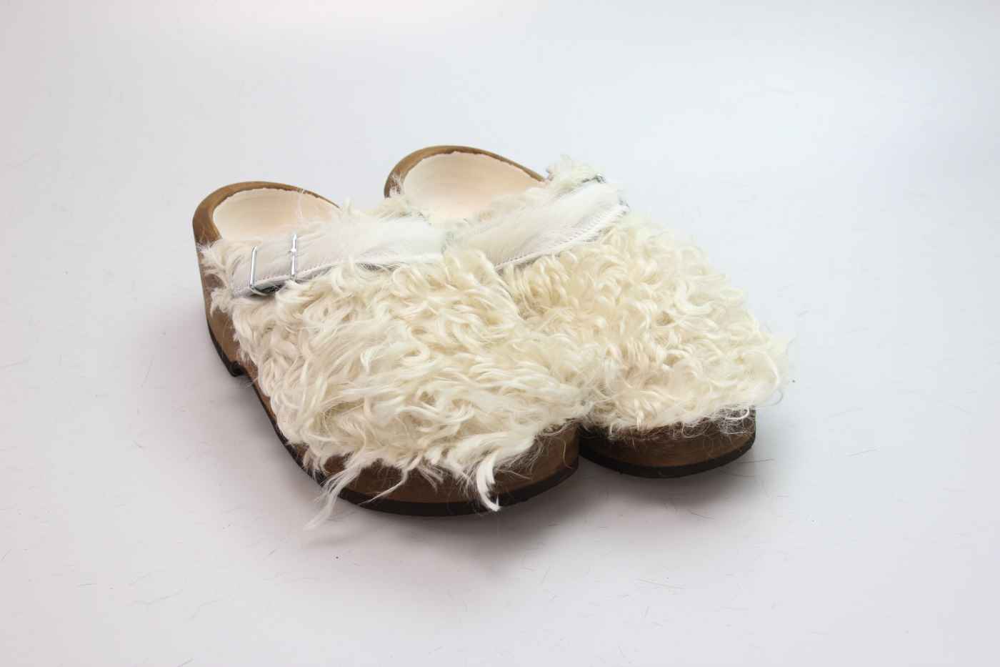 Der Holzschuh, mit dem Sie sicherlich auffallen werden. Außen verwenden wir für dieses Modell Ziegenfell. Für zusätzichen Komfort ist er auch mit Schaffell gefüttert. Im Bild sehen Sie das Unikat, welches Sie erhalten.