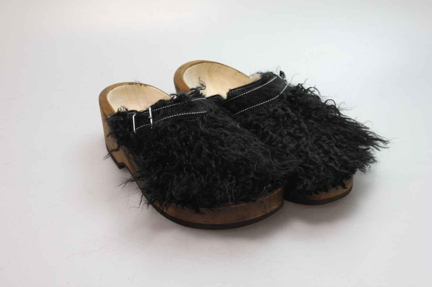 Der Holzschuh, mit dem Sie sicherlich auffallen werden. Außen verwenden wir für dieses Modell Ziegenfell. Für zusätzichen Komfort ist er auch mit Schaffell gefüttert. Im Bild sehen Sie das Unikat, welches Sie erhalten.