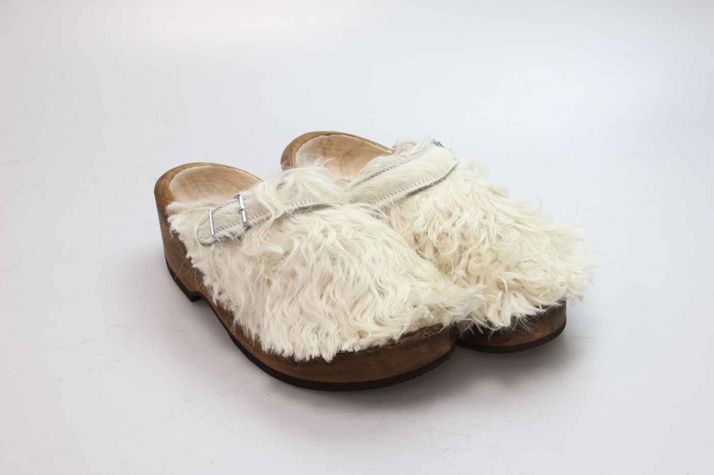 Der Holzschuh, mit dem Sie sicherlich auffallen werden. Außen verwenden wir für dieses Modell Ziegenfell. Für zusätzichen Komfort ist er auch mit Schaffell gefüttert. Im Bild sehen Sie das Unikat, welches Sie erhalten.