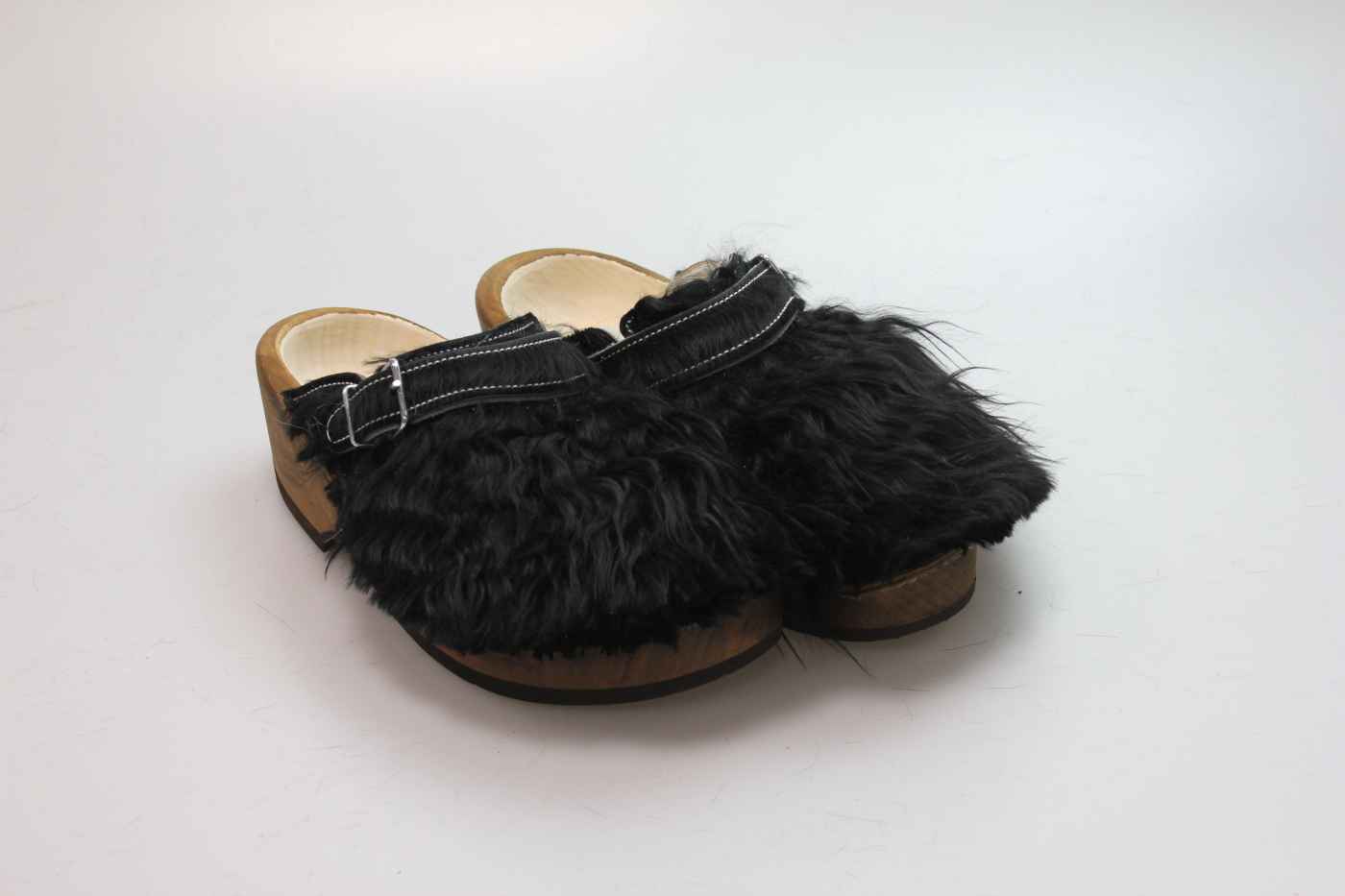 Der Holzschuh, mit dem Sie sicherlich auffallen werden. Außen verwenden wir für dieses Modell Ziegenfell. Für zusätzichen Komfort ist er auch mit Schaffell gefüttert. Im Bild sehen Sie das Unikat, welches Sie erhalten.