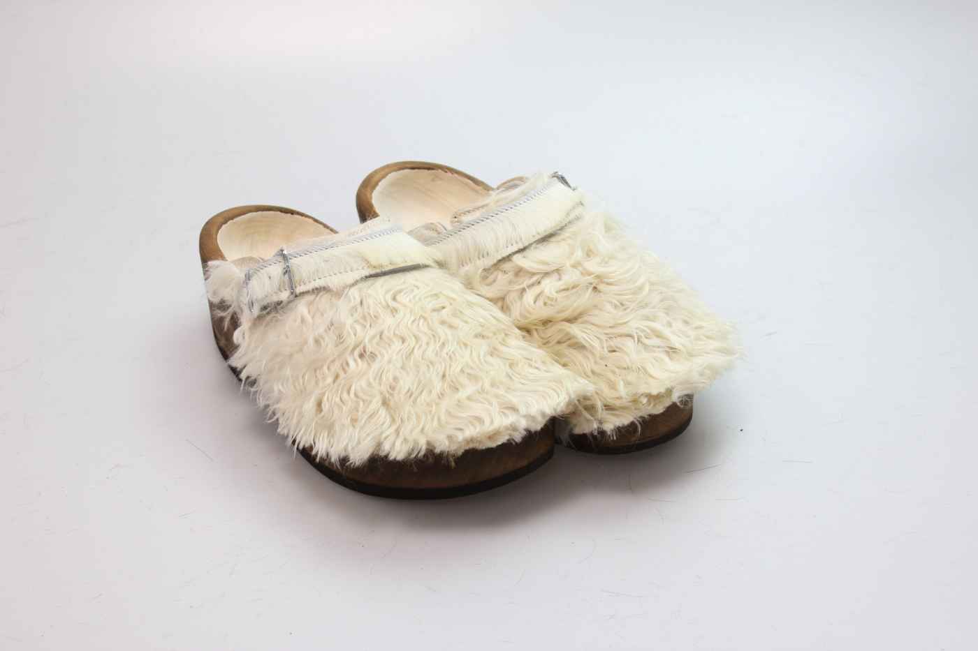 Der Holzschuh, mit dem Sie sicherlich auffallen werden. Außen verwenden wir für dieses Modell Ziegenfell. Für zusätzichen Komfort ist er auch mit Schaffell gefüttert. Im Bild sehen Sie das Unikat, welches Sie erhalten.