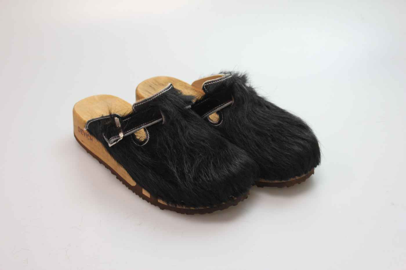 Das Obermaterial ist aus echtem Rindfell und in verschiedenen Farben erhältlich. Durch die Schnalle am Rist/Spann kann er dem Fuß angepasst werden. Im Bild sehen Sie das Exemplar, das Sie erhalten.
