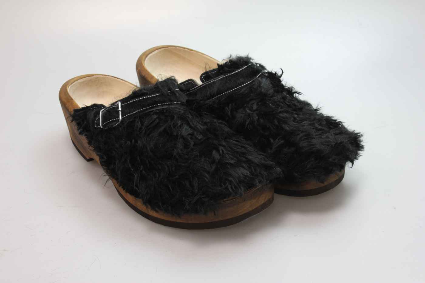 Der Holzschuh, mit dem Sie sicherlich auffallen werden. Außen verwenden wir für dieses Modell Ziegenfell. Für zusätzichen Komfort ist er auch mit Schaffell gefüttert. Im Bild sehen Sie das Unikat, welches Sie erhalten.