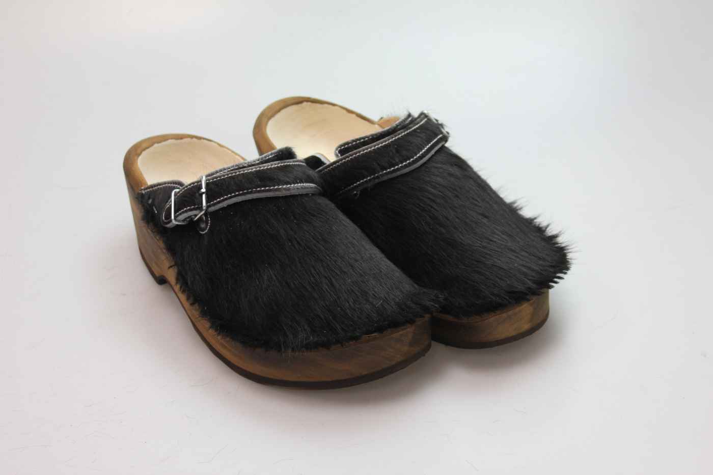 Dieser Holzschuh ist mittels einer Schnalle am Rist/Span verstellbar und ist mit einem Rindsleder gefüttert. Das Obermaterial ist echtes Rindfell. Im Bild sehen Sie das Unikat, welches Sie erhalten.