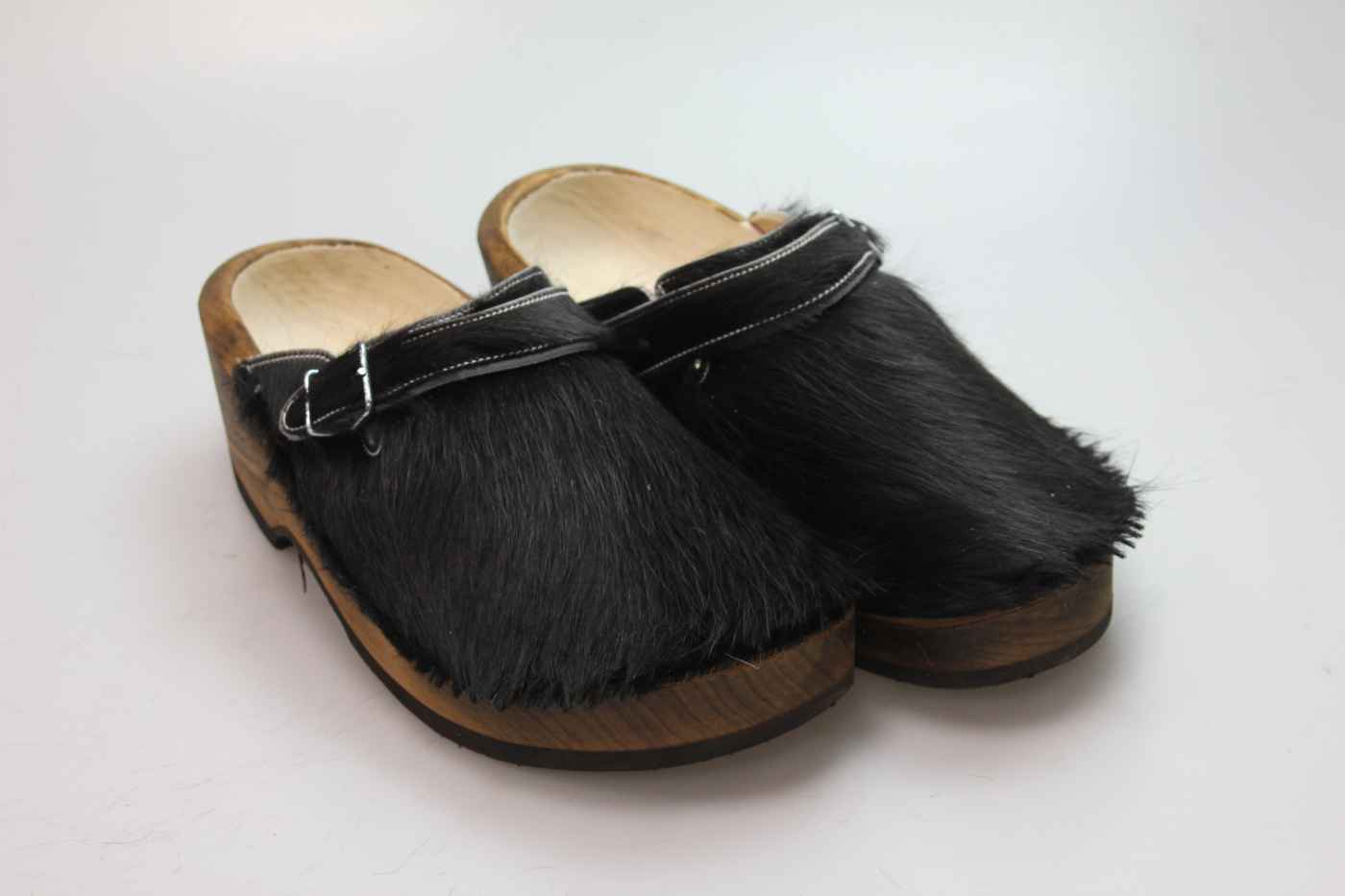 Dieser Holzschuh ist mittels einer Schnalle am Rist/Span verstellbar und ist mit einem Rindsleder gefüttert. Das Obermaterial ist echtes Rindfell. Im Bild sehen Sie das Unikat, welches Sie erhalten.