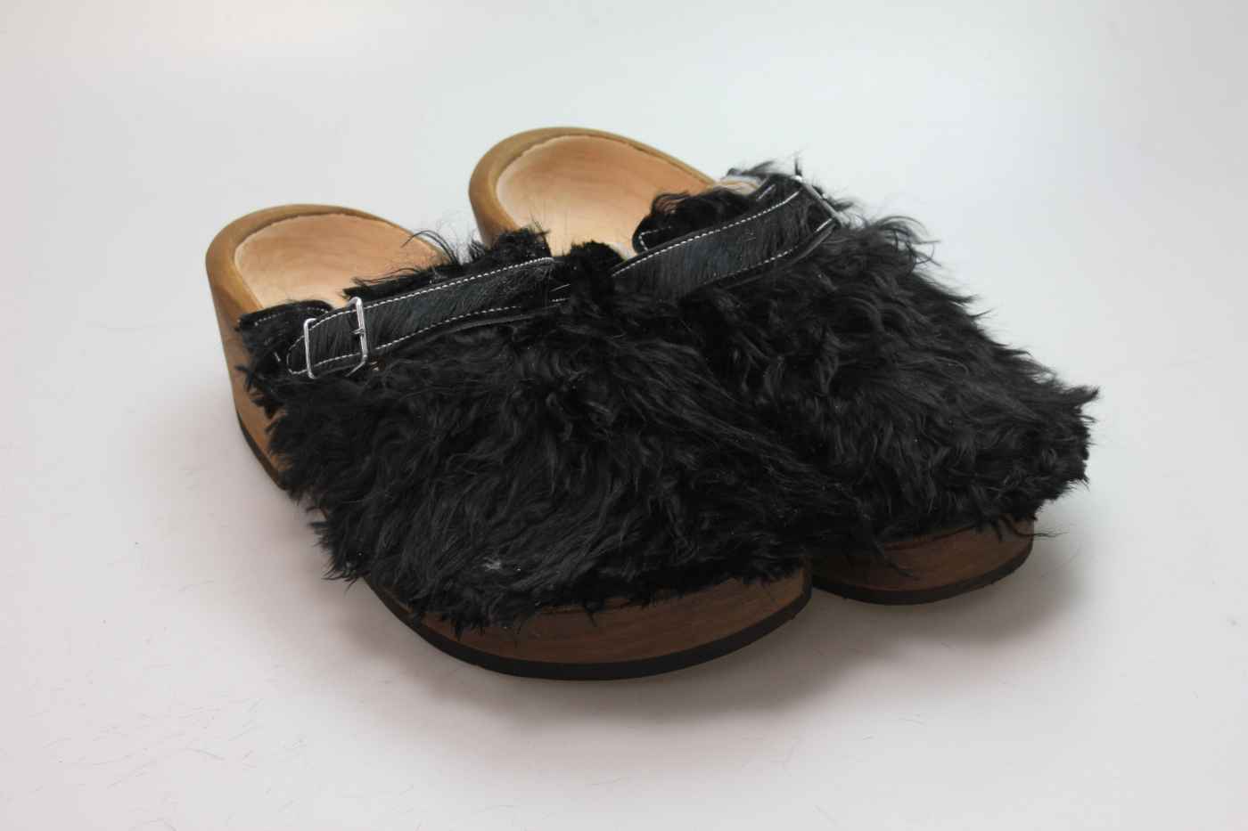 Der Holzschuh, mit dem Sie sicherlich auffallen werden. Außen verwenden wir für dieses Modell Ziegenfell. Für zusätzichen Komfort ist er auch mit Schaffell gefüttert. Im Bild sehen Sie das Unikat, welches Sie erhalten.