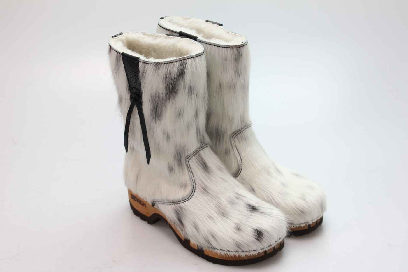 Bequemer Schlüpfstiefel aus Rindfell, mit beweglicher Holzsohle. Die Innenseite ist mit hochwertigem, echtem Schaffell verarbeitet.