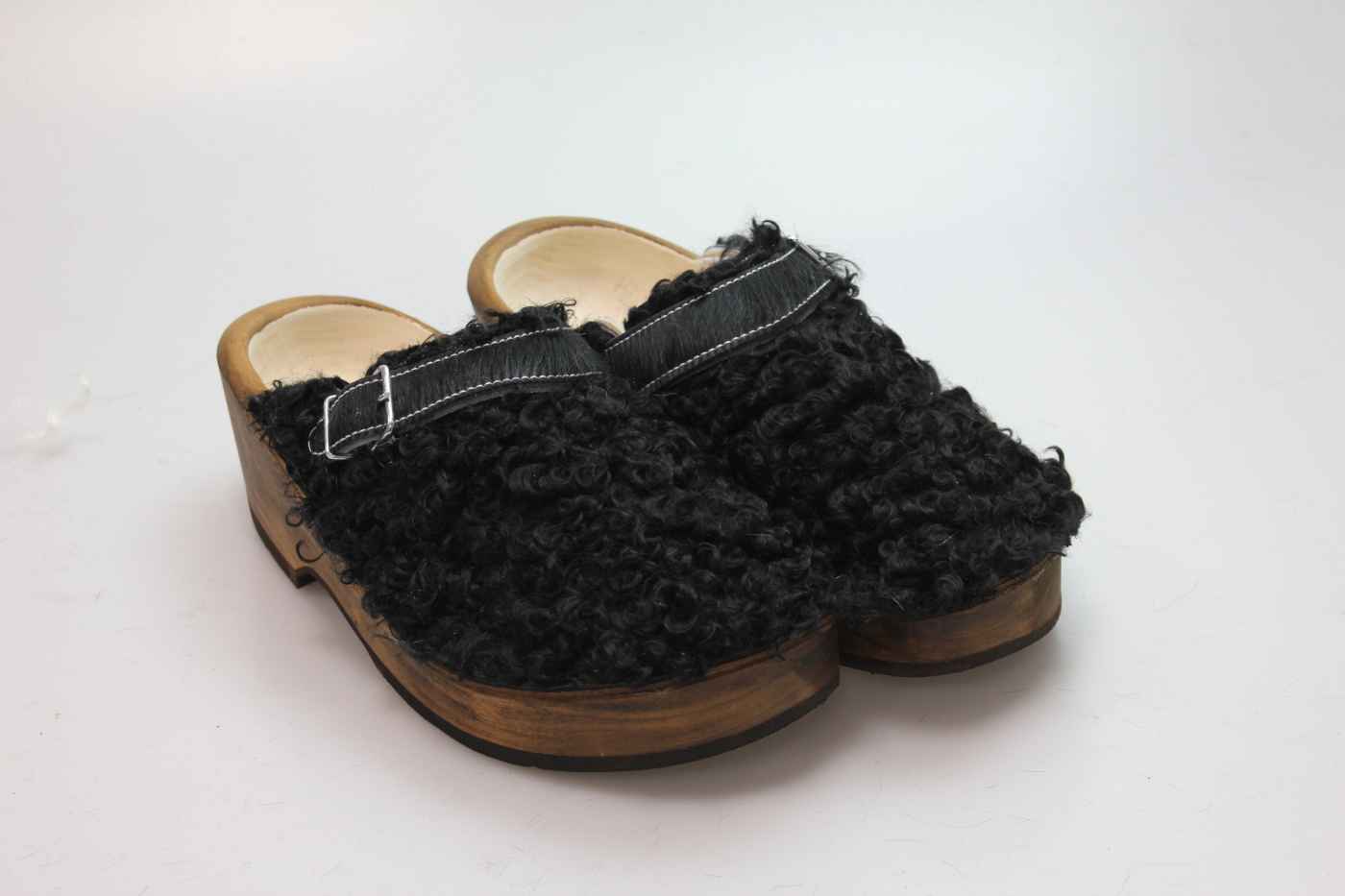 Der Holzschuh, mit dem Sie sicherlich auffallen werden. Außen verwenden wir für dieses Modell Ziegenfell. Für zusätzichen Komfort ist er auch mit Schaffell gefüttert. Im Bild sehen Sie das Unikat, welches Sie erhalten.