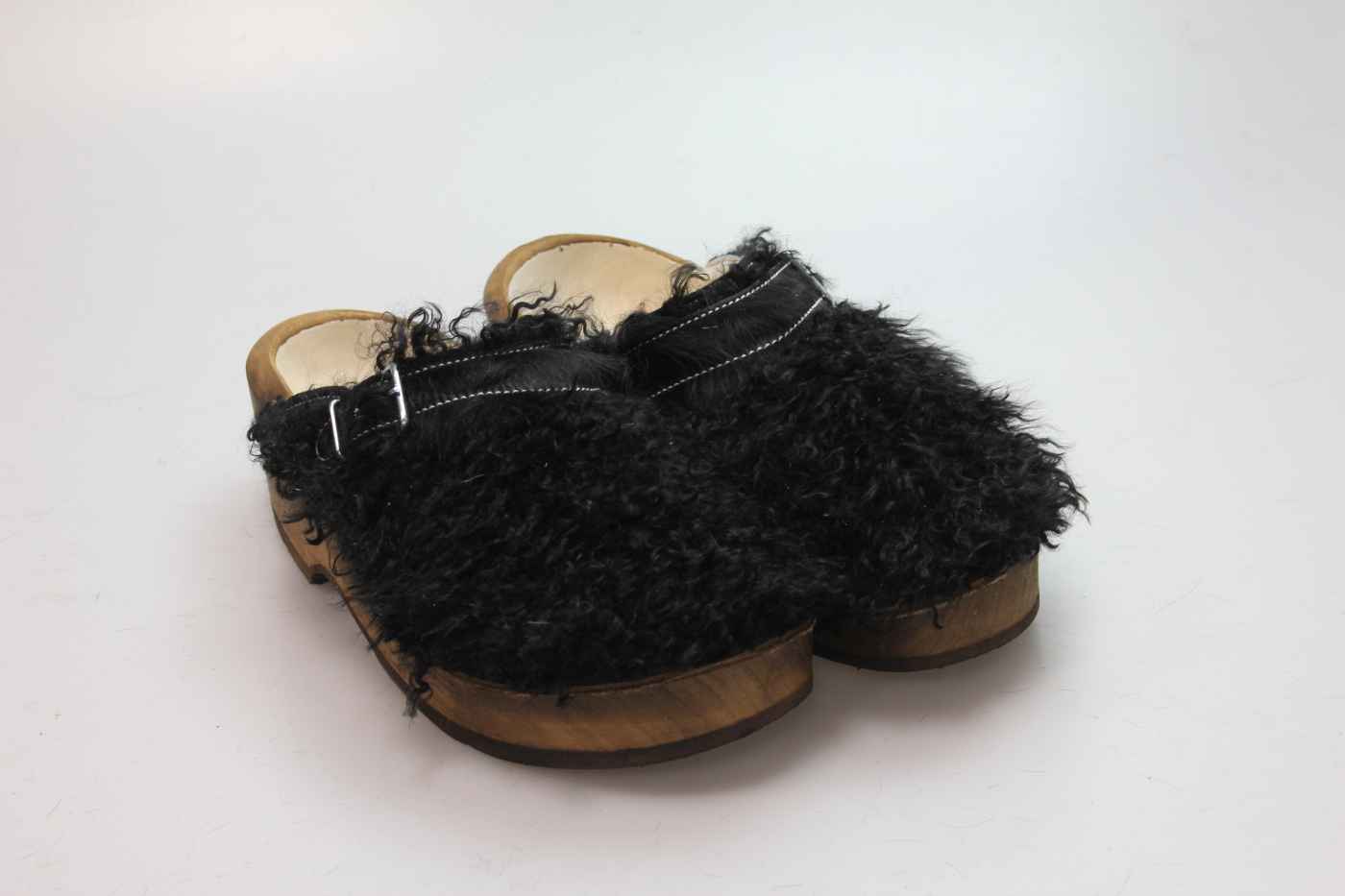 Der Holzschuh, mit dem Sie sicherlich auffallen werden. Außen verwenden wir für dieses Modell Ziegenfell. Für zusätzichen Komfort ist er auch mit Schaffell gefüttert. Im Bild sehen Sie das Unikat, welches Sie erhalten.