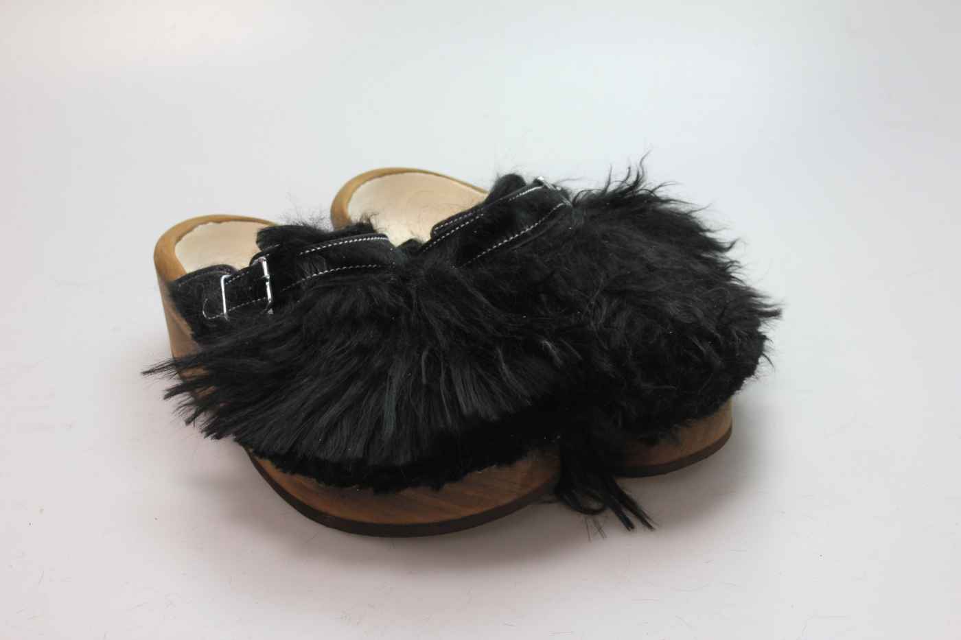 Der Holzschuh, mit dem Sie sicherlich auffallen werden. Außen verwenden wir für dieses Modell Ziegenfell. Für zusätzichen Komfort ist er auch mit Schaffell gefüttert. Im Bild sehen Sie das Unikat, welches Sie erhalten.